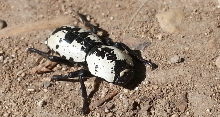 This is an Ironclad beetle. Its exoskeleton is so strong that collectors have to drill through their exoskeleton to put a pin through them.