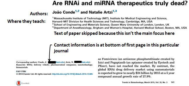 How to locate contact information in a journal article. A little bit of sleuthing may be required, but you can usually find scientist contact information in journal articles. Always be considerate of their time when you contact any professional.