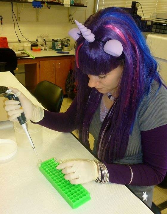I do molecular genetics, which means that I get to look at how bugs work at the cellular level. It’s really cool stuff, but the work I do basically involves transferring different liquids between different test tubes.