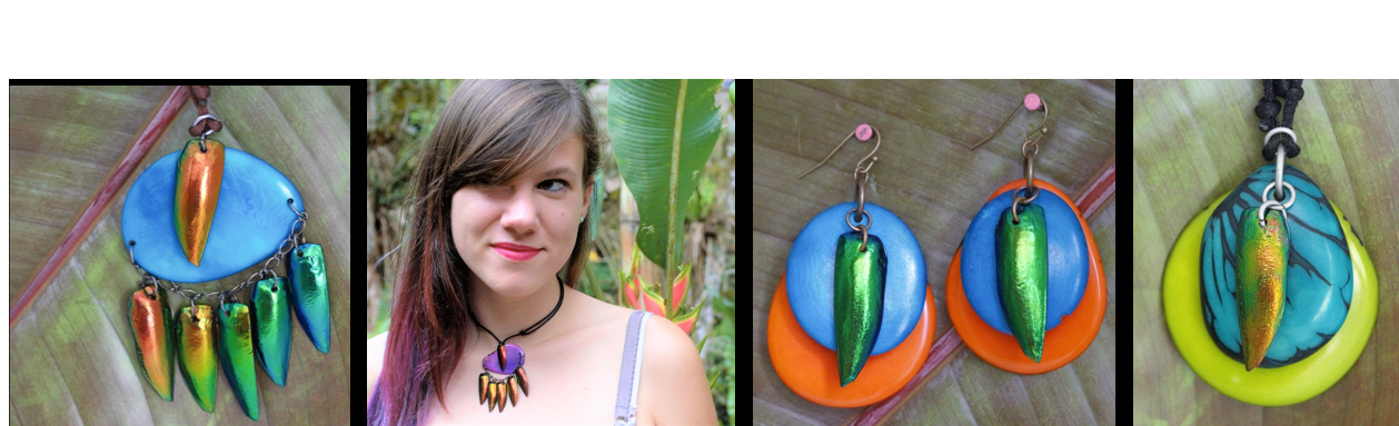 You can even get these lovelies here which feature emerald green beetle shells set atop teal and natural ivory tagua pieces.