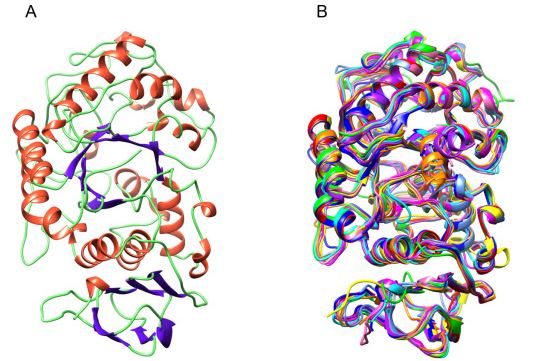 Alpha-amylase pretty much looks the same across all insects. We can take a picture of the protein-through the magic of X-ray crystallography-and overlay a whole bunch of pictures on the proteins…and they all line up almost perfectly. Because of this remarkably similar structure, it’s possible for antibodies to recognize everything at once.