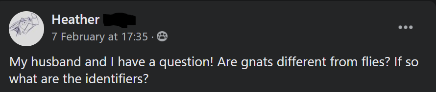 The complicated part is: but “gnat” doesn’t really have a taxonomic bearing so several families of small flies can be considered “gnats”. So pinpointing an identification of what is a “gnat” is not very easy.